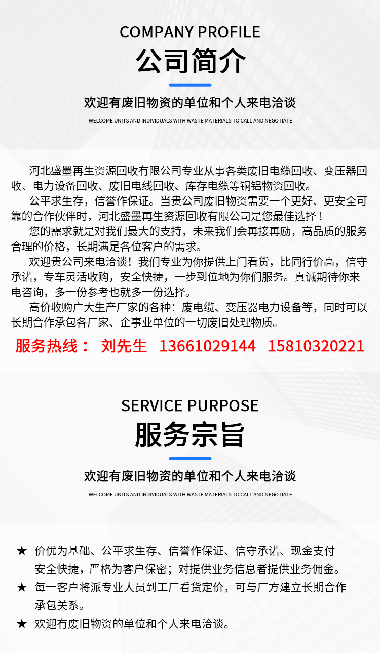 | 材质: | 废铜废铝原材料 器材等 |