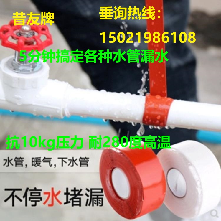 操作说明:本堵漏胶带自身有稍许粘性的,作用原理是:用力拉紧缠绕后,每一层胶带受力后自身发生反应自粘为一体,从而达到快速密封的效果!