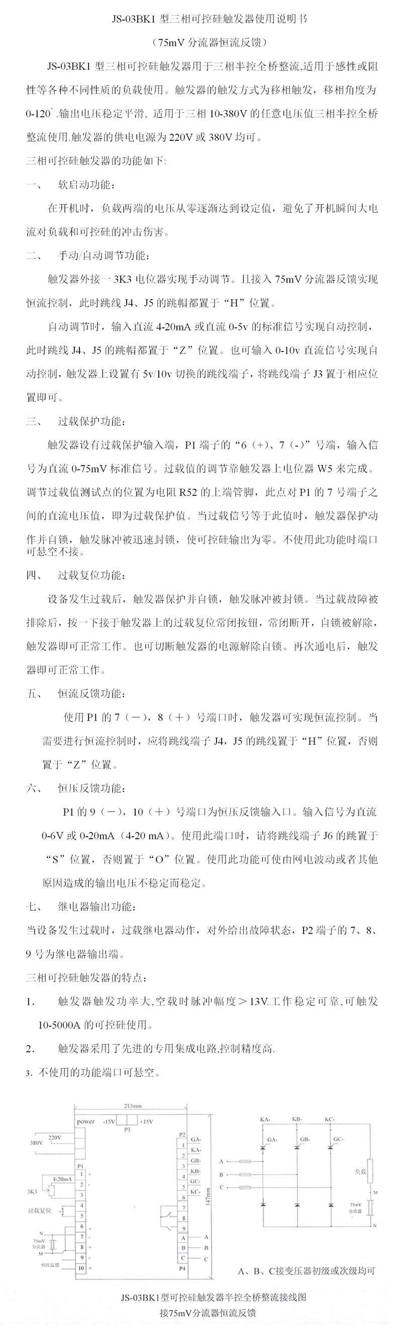 JS-03BK1型三相可控硅触发器使用说明书有吗?