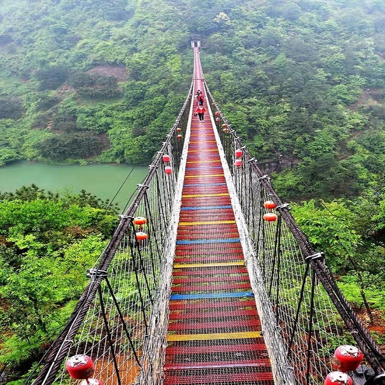 高空玻璃吊桥横跨河道,上可以观天池,下可以览峡谷,领略整个景区的秀美山水风光。可以让游客感受凌空千米的神奇,给游客一种漫步在空中,脚踩白云,腾云驾雾的感觉,给游客带来不一样的体验。