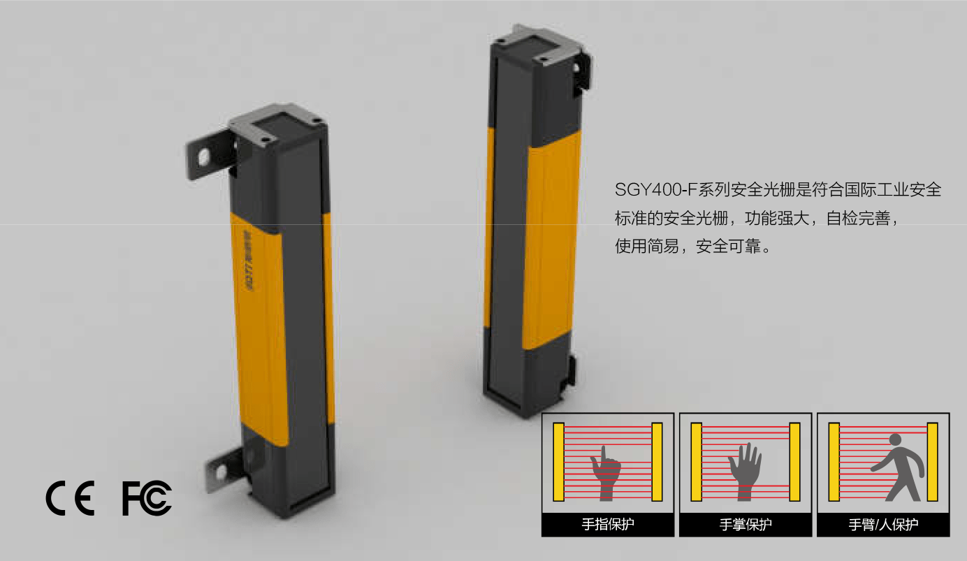 SGY400-F系列安全光栅是符合国际工业安全标准的安全光栅,功能强大,自检完善,使用简易,安全可靠。