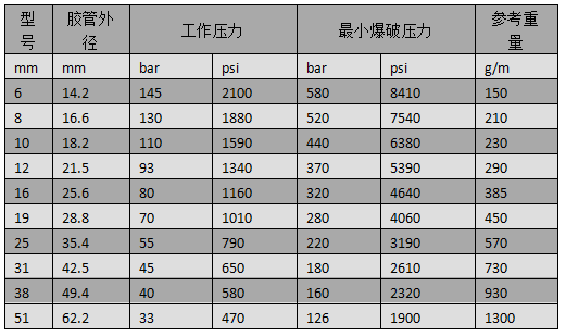 胶层具有良好的耐热性能,胶管的爆破压力不低于工作压力的10倍。