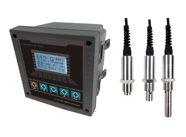 AOCON 电导率仪表是在保证性能的基础上简化了功能,从而具有了特别强的价格优势。二次表配上常数为1.0 或10 的电极,可测量一般液体的电导率;配上0.1 或0.01 的电极,即能准确测量纯水或超纯水的电导率,特别适用于电厂锅炉给水和蒸汽冷凝水等高纯水电导率的在线连续监测。