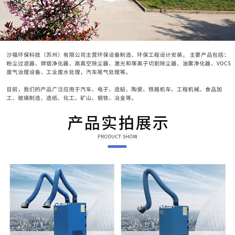 适用于:焊烟、各类粉尘、打磨、异味净化处理等