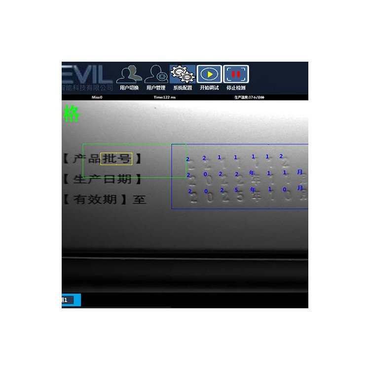 长春OCR三期码字符检测机专注于机器视觉技术,利用深度学习技术,自主学习各类工业场景中不同类型的字符,包含数字、字母、文字等其他特殊字符,实现复杂环境下字符的高精度识别,并且识别速度快、准确率高。
