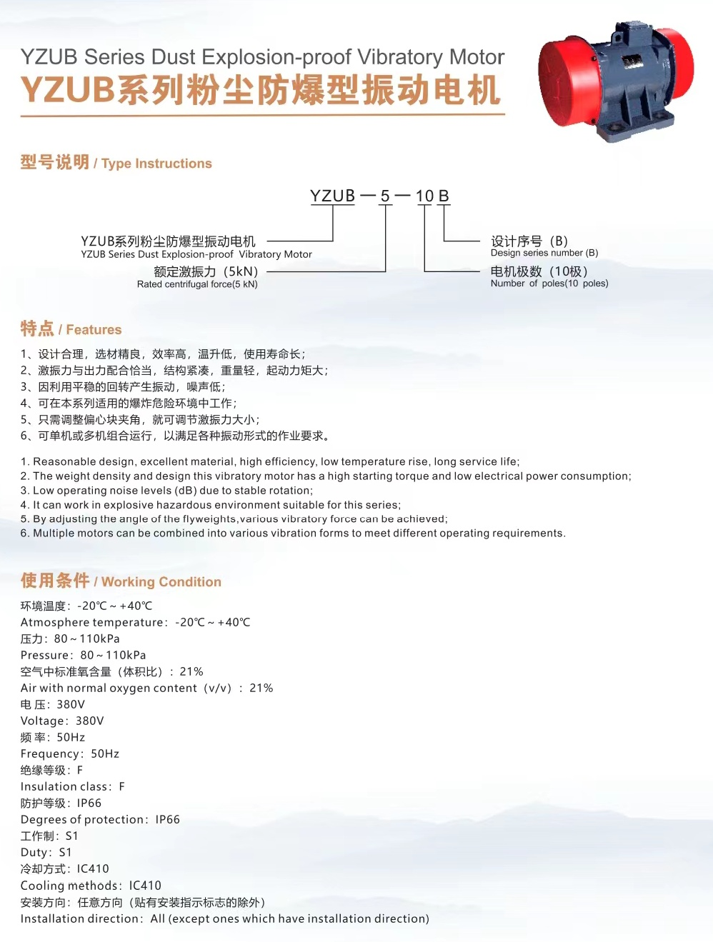 YZUB系列粉尘防爆型振动电机使用说明书有吗?