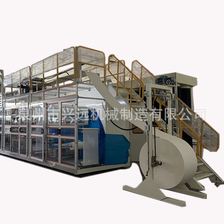 生产线配置(Configuration) 产品规格(Production Size):155mm×65mm 165mm×65mm 产品结构(Production Structure):表层面料,无尘纸,底膜,背离型纸,小包膜。 控制系统(co*ol System):PLC控制。 传动系统(Drive System):全自动,全伺服传动,同步带采用进口件,关键部位均采用进口轴承。 张力系统(Tension System):配置张力开卷系统,恒张力控制及储料机构,材料纠偏系统。这套恒张力系统确保了全速状态下接料稳定,减小了对材料拉力的冲击,减少停机次数。 安全系统(Safety System):操作面装有安全防护装置并配有急停开关、安全标识,后传动装有安全拉线,高音频风机采用隔音或消声装置。 纠偏系统(Materialas Corrective System):BST纠偏器《可选配》。