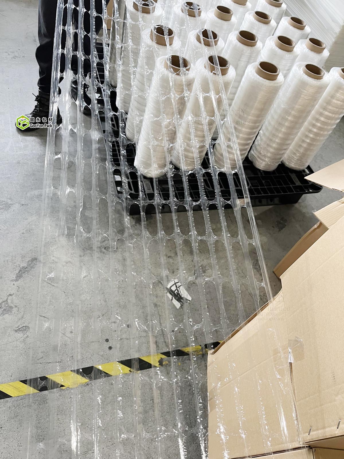 固永包材的打孔缠绕膜包装后还可以使其包裹固定的货物恢复到常温常湿的环境,或者是恢复到其存储环境的湿度和热度。不会在托盘单元形成密闭空间,从而产生水汽,影响产品包装,甚至是产品品质。
