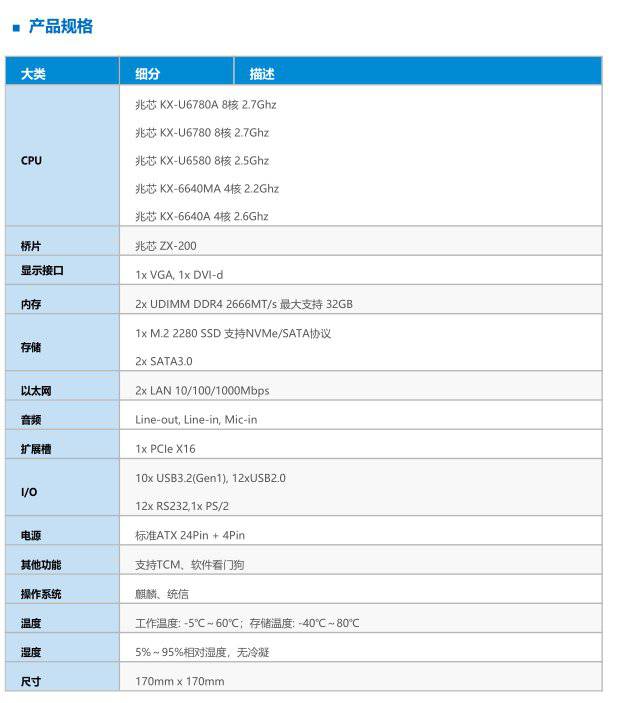 采用兆芯KX-U6780A处理器,八核,主频2.7Ghz