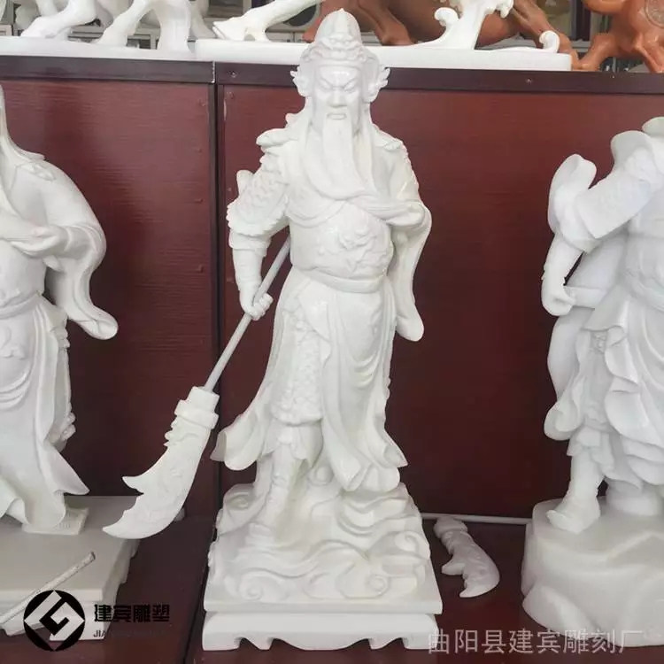 石雕关公逐渐成为许多公共场所的标志性雕塑。关公,这位中国历史上著名的武将,以其忠诚、正义和勇敢的形象,深受人们敬仰。将关公雕塑引入公共场所,不仅是对传统文化的传承,也为城市景观增添了一抹独特的文化气息。在商业中心,石雕关公的应用则更多的是象征着招财和吉祥。许多商家为了祈求生意兴隆,都会选择在店门前或大厅摆放一尊关公雕像。关公作为“财神”的形象,承载着人们对财富和成功的追求。商场和购物中心通过这一象征性的雕塑,吸引顾客的注意力,同时也让顾客在购物的过程中感受到一种文化的厚重感和商家对传统的尊重。