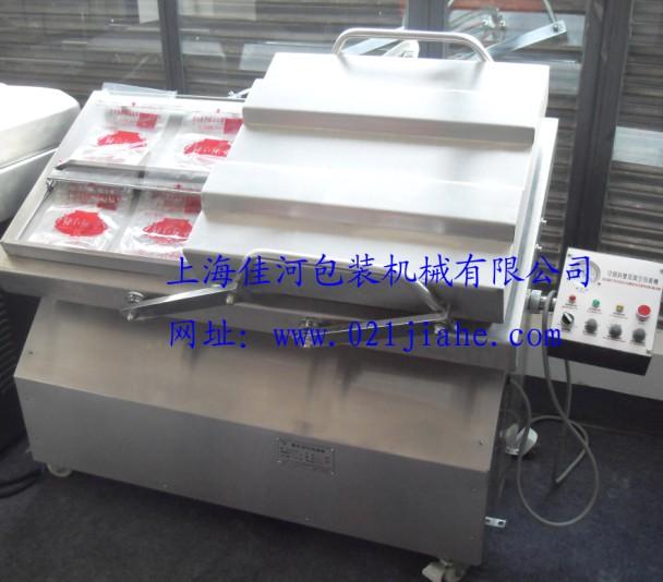 真空包装机上下真空及机身由平衡支架承托,并可作0—45度倾斜角度定位调节。特另适用糊状、流动性较大的物品或含液体较多的物品(如:泡菜、菌菇、清水笋、豆沙、等含汤料物品)真空包装,使物品包装袋也同时倾斜安放,真空袋内流动物品及液体比容易溢出袋口,确保封口质量、能有效的延长包装物品的保质期。该机同时既能包装颗粒、粉状、块状等,物品(如:大豆、绿豆、花生米、等)包装成砖块形、四方形、长方形等成形包装模型,提高产品美观与挡次.