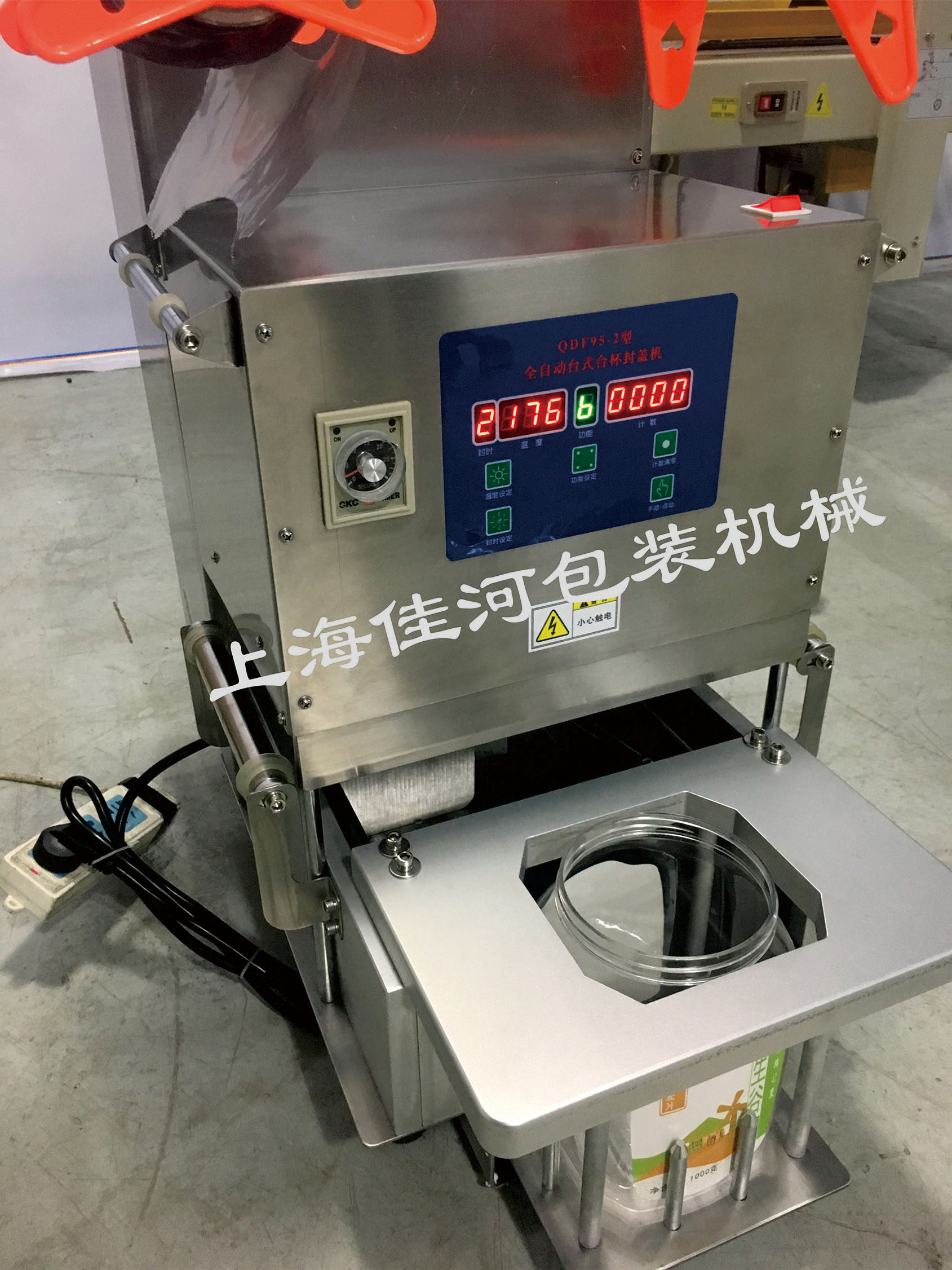 1.操作步骤 :人工放杯拿杯、工作面板自动进出、自动封口、自动切膜、自动卷膜