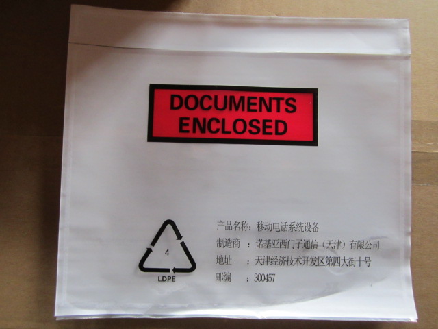 专业生产背胶袋(也叫不干胶塑料、物流袋/贴箱袋装箱单信封),一面有不干胶可以贴于纸箱或木箱等包装容器上,另一面透明开口,可放入装箱单.提货单.安全数据单等随货资料, 。易于区别及清点包装物品.密封PE袋可以保护单据在运输中的安全,可按客户要求定做各种规格尺寸及印刷.主要用于物流.货运快递等行业