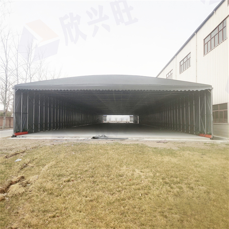 6、推拉雨棚经济实用;可长期反复使用,且篷房内无任何支柱,场地完全利用,节约成本。