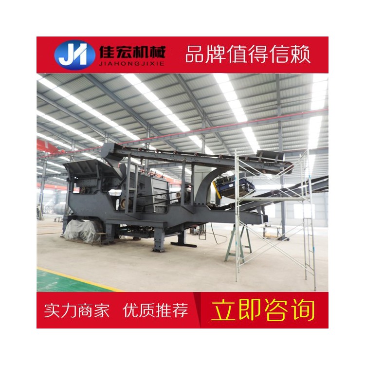 矿山移动破碎车搭载轮胎驱动装置而形成,整车驱动,一体式作业模式,能适应不同场地条件和加工需求,可实现自由转场作业,能深入不同场地进行高效作业。