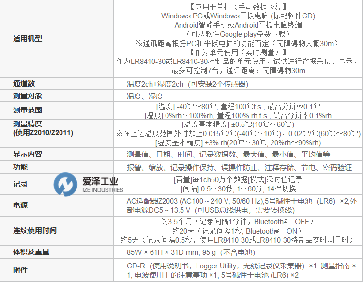 爱泽工业(IZE INDUSTRIES)特价经销、常用HIOKI无线温湿度数据采集仪型号: