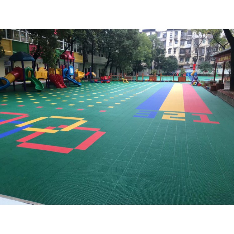 悬浮地板也称组合式运动地板,是第四代体育运动地板的运动场地面层材料,成品为块状,规格为250mm x 250mm x13mm,305.6mm*305.6mm*14.8mm,可直接铺装在水泥或沥青的基础表面,无需粘接,每一块地板之间用独特的锁扣进行连接,安装十分的简单,还可以随意拆卸。悬浮地板采用成熟的高强度聚丙烯环保材料,有效解决地板热胀冷缩问题的同时还具有稳定的表面摩擦,抗紫外线添加剂被加入到每一块地板中,能够保障地板在长期受日光照射中不褪色,悬浮地板的结构设计加上坚固的加强型支撑脚结构,创造卓越的垂直的减震效果,防滑的表面可有效防止运动损伤,良好的球回弹性能和球速保证了地板卓越的运动性能,它可用于铺装理想的高性能篮球场、网球场以及五人制足球场、排球场、羽毛球场等多功能球场。