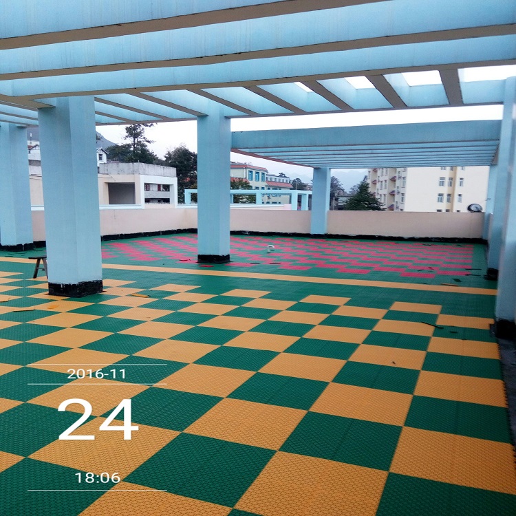 九宫格悬浮式地板产品结构:表面结构:表面双层米字型网格结构底面结构:加粗十字型支撑脚,均匀迅速的分散表面荷载。底部快速排水设计,使铺装场地在雨后立刻恢复使用,不会有场地外观质量:颜色均匀一致,无明显色差,表面无龟裂、起泡、塑化不良,地板正面无毛刺。物理性能:高温80℃,72h无局部粉化、龟裂、起泡及明显变形等外观变化。低温-50℃,72h无局部粉化、龟裂、起泡及明单块地板整面均匀收到150kN压力,并保持1分钟,无任何损伤。