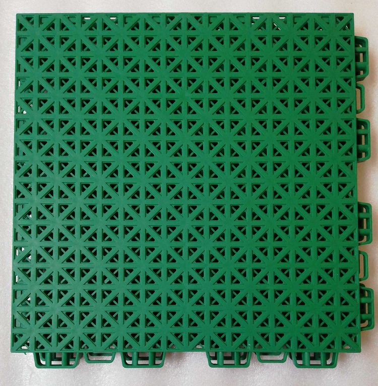 九宫格悬浮式地板产品结构:表面结构:表面双层米字型网格结构底面结构:加粗十字型支撑脚,均匀迅速的分散表面荷载。底部快速排水设计,使铺装场地在雨后立刻恢复使用,不会有场地外观质量:颜色均匀一致,无明显色差,表面无龟裂、起泡、塑化不良,地板正面无毛刺。物理性能:高温80℃,72h无局部粉化、龟裂、起泡及明显变形等外观变化。低温-50℃,72h无局部粉化、龟裂、起泡及明单块地板整面均匀收到150kN压力,并保持1分钟,无任何损伤。