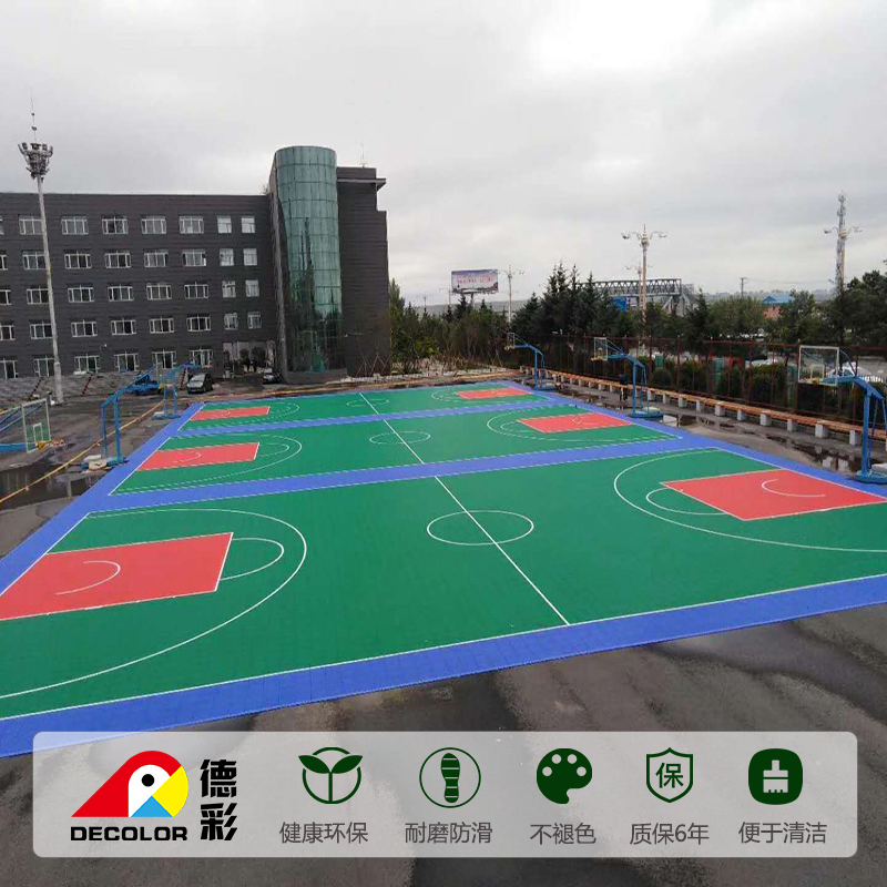 悬浮地板颜色多样美观,可组合形成不同的图案,适合各种环境,是理想的运动场所地面材料,被广泛用于网球场、排球场、蓝球场、健身房、体育馆等多种运动场所。