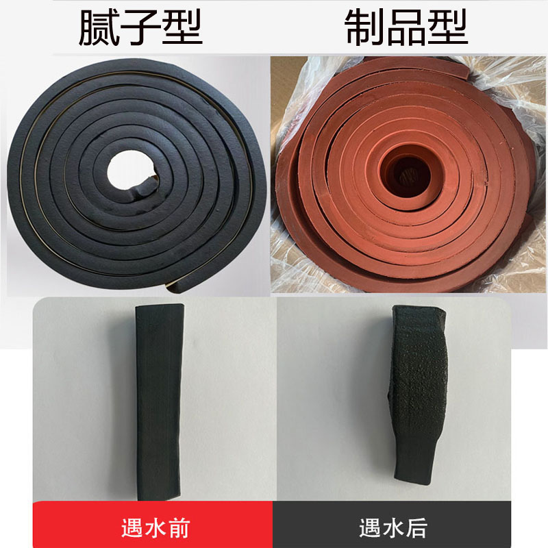 遇水膨胀止水条:含高分子吸水膨胀材料(如膨润土、PN 遇水膨胀橡胶),遇水后体积膨胀 150%~300%,挤压填充更细微的孔隙,甚至反向堵塞渗水通道。例如隧道管片接缝中,此类止水条在地下水作用下膨胀,可将缝隙水压抵消,实现 “以水止水”。