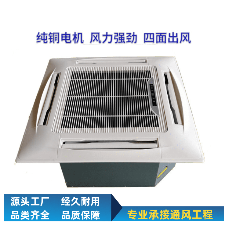 送风范围广:卡式风机盘管采用四面出风设计,能够向下65℃送风,送风范围更加宽广,感觉更加舒适。