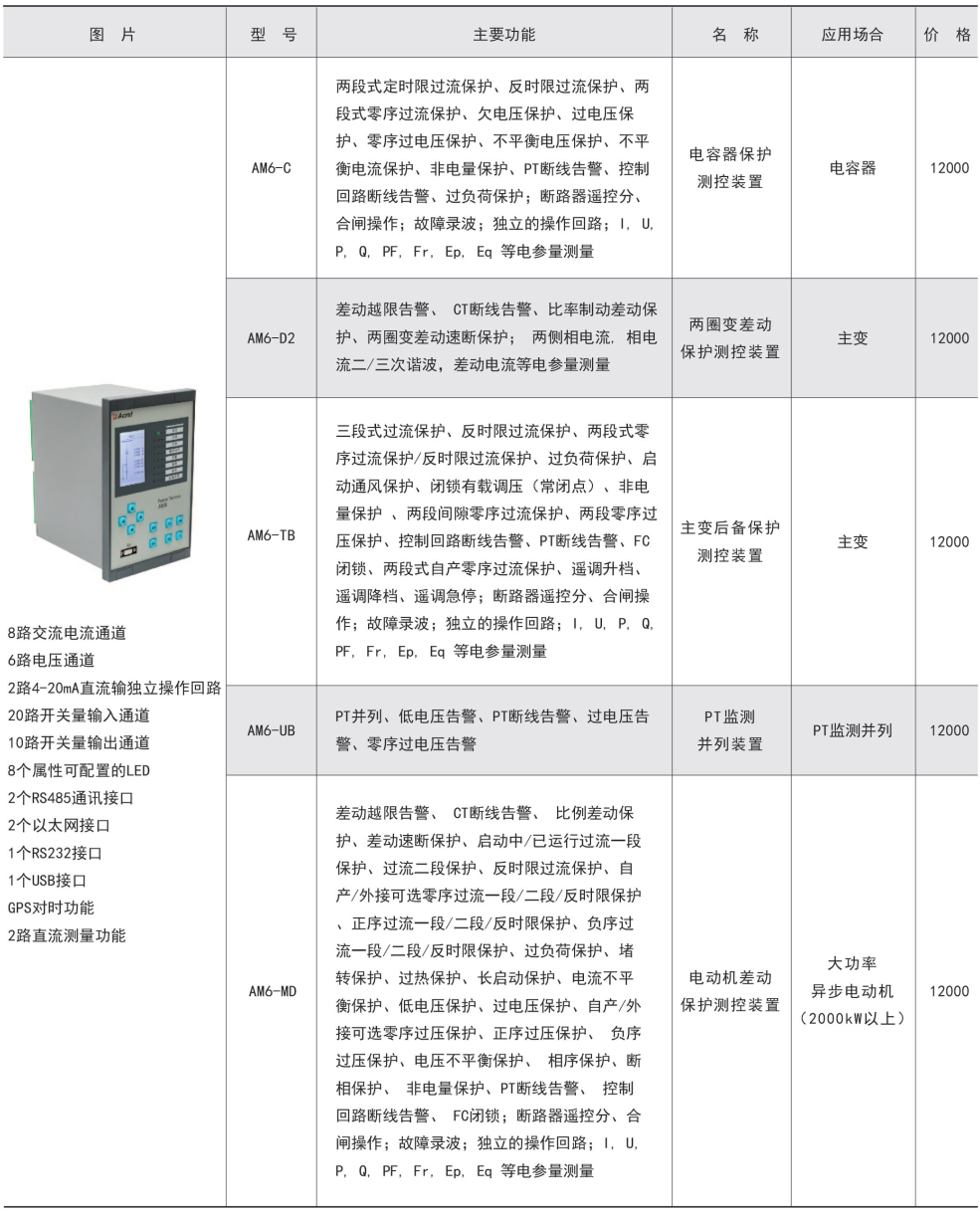 AM系列微机保护测控装置集保护、测量、控制于一体,适用于35kV及以下电压等级的用户终端变电站(所),可实现用户变电站的保护和测控。