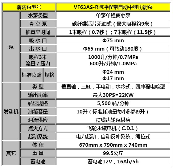消防泵型号 VF63AS-R四冲程带自动中继功能泵