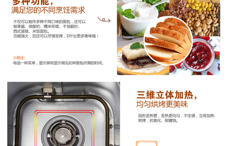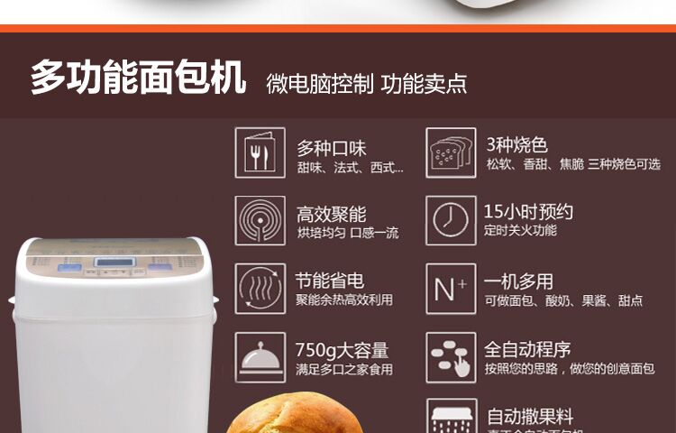 多功能面包机微电脑控制 功能卖点