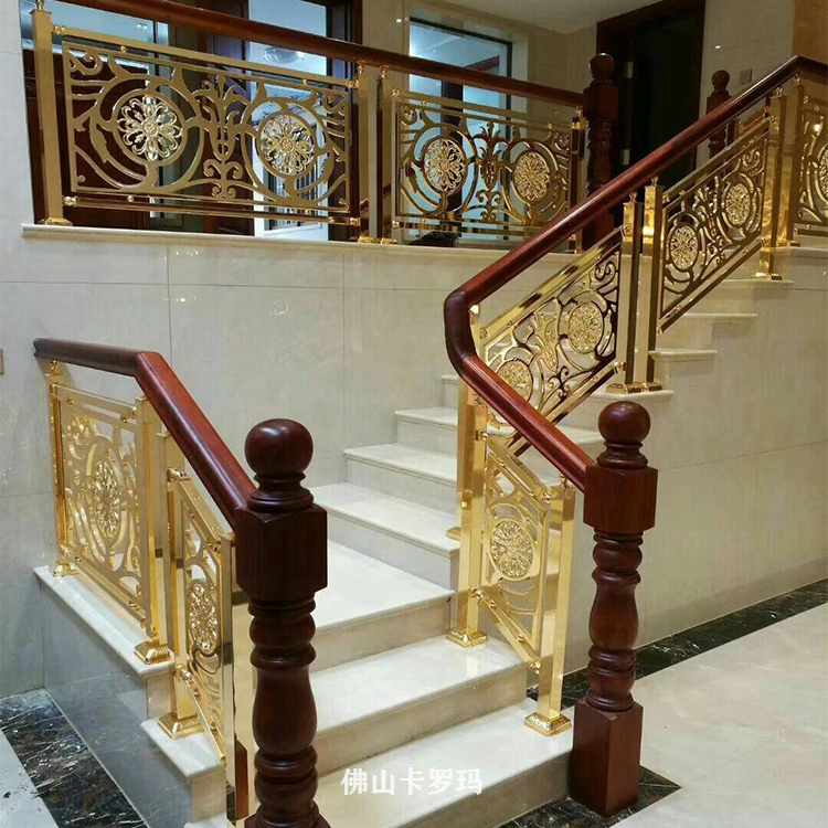 铜艺雕刻扶手比较厚实牢固,有质感。家里装修这种扶手,总会给人一种稳重大气的感觉。护栏上的花纹多样,还可以根据自己的喜好选择,不像不锈钢那样一成不变。家里要是装修的比较现代风,装铜楼梯扶手会显得更美观一些。