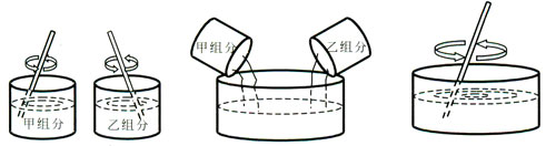 3 ,按甲组份:乙组份 =2 : l (质量比)配合比混合均匀,搅拌至无组份条块,色泽均匀时即可使用(混合量较大时,推荐使用机械式搅拌器)。