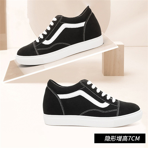 如果担心纯黑色过于无趣,来点白色做点缀,整体经典耐看。街头氛围感UP,很适合穿去街拍。磨毛感反绒牛皮,质感特好。内外增高加起来7CM,上脚特显高!