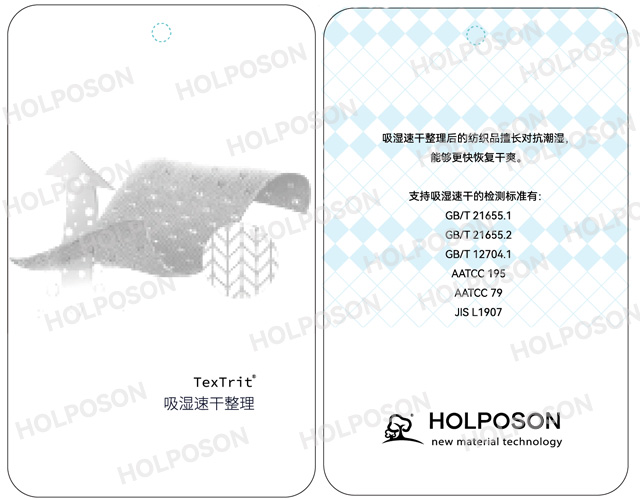 HOLPOSON® Aquasoft 适用于棉及混纺织物的吸湿速干功能整理剂,经本品处理后的织物,具有优良的手感,同时赋予纤维素纤维及混纺织物具有良好的亲水、吸湿排汗性能。HOLPOSON® Aquasoft赋予天然纤维及其混纺织物优良的吸湿特性,用于绒类织物手感柔软、蓬松.