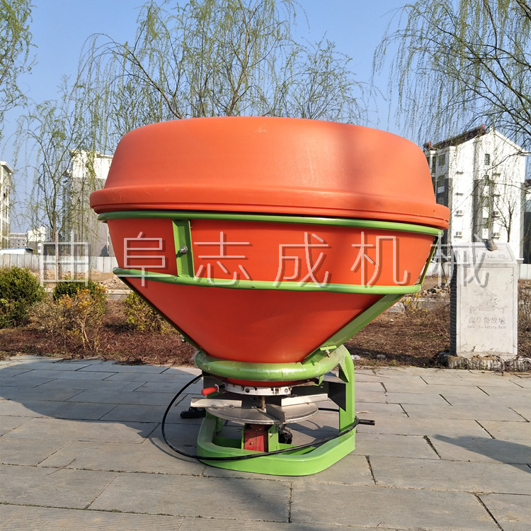 该撒肥车用于抛撒各种干湿粪肥,特别是含水量大的黏湿粪肥和大块粪肥。可使抛撒肥料被充分破碎、均匀抛撒,具有较好的粉碎及撒布能力。该机由拖拉机牵引带动,撒肥车肥料输送系统直接采用拖拉机液压输出动力驱动,带动车厢内部的输送链自动把肥料向后输送,肥料输送快慢可调节;肥料抛撒系统由拖拉机后动力输出轴驱动,通过高速旋转的双竖螺旋绞龙装置将肥料打碎并均匀抛撒出去,施肥量可调节。该撒肥车适用于大型农场、牧场、草地等地的粪肥、有机肥抛撒作业,可实现大规模统一、高能施肥作业,降低劳动强度,提高施肥效率,节省成本,实现各种经济效益。