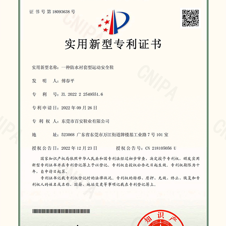 防水保暖专利证书