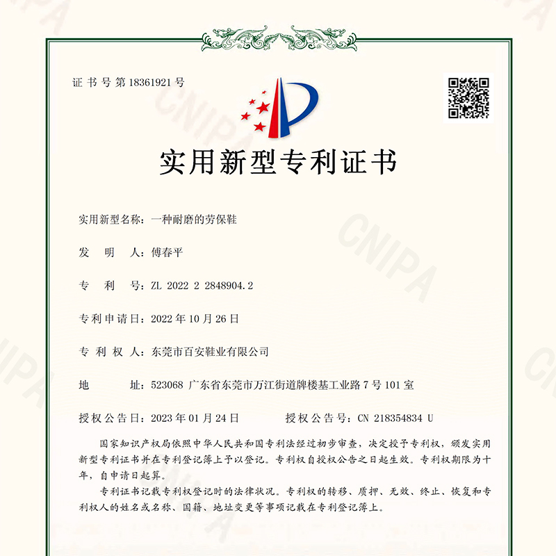 防滑型专利证书
