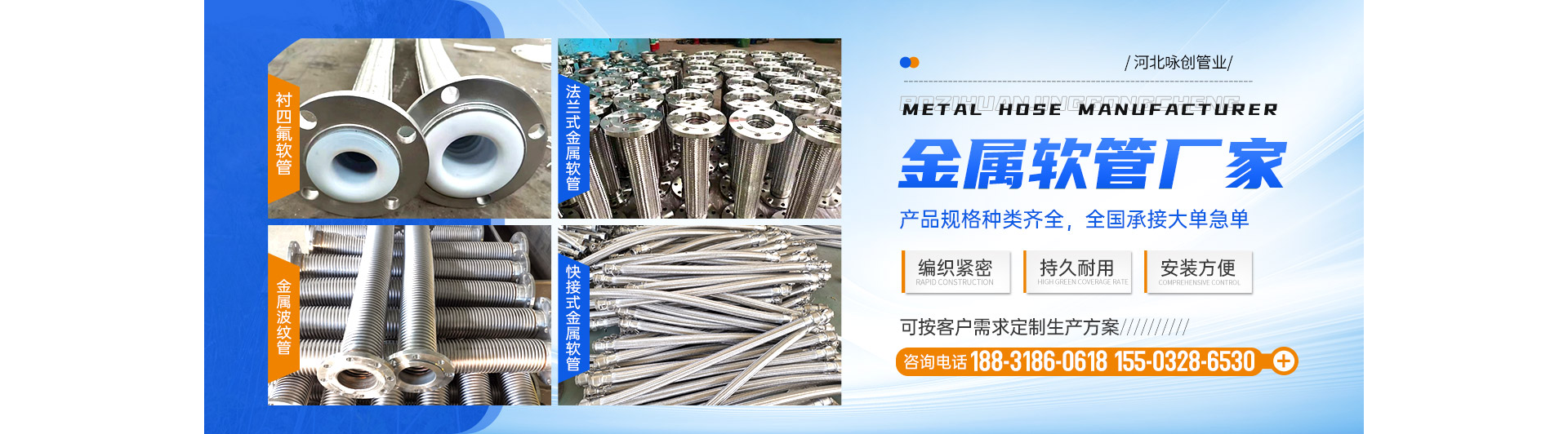 公司主要经营新型橡塑产品技术研发,金属软管、补偿器、接头等金属制品,高低压胶管、四氟管等橡胶制品