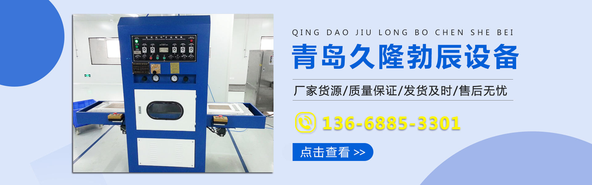青岛久隆勃辰设备,是一家专业研发、设计制造数十类设备的源头,本自主生产超声波焊接机,环保型医疗热合机,杜邦纸吸塑医疗封口机,特卫强纸吸塑医疗焊接机,热熔机、螺母埋植机,塑胶焊接机,热贴机、热板机,旋熔机,油压机,高周波熔接机,超声波清洗机,无纺布花边机,高频机熔接机,高周波熔断机等设备的专业制造生产,企业产品通过ISO9001:2008国际质量管理体系、欧盟CE等多项国际认证。产品获“实用新型专利”、“安全结构专利”、“外观设计专利”,以达到安全生产之理念。同时工自拥模具配套生产工,专...